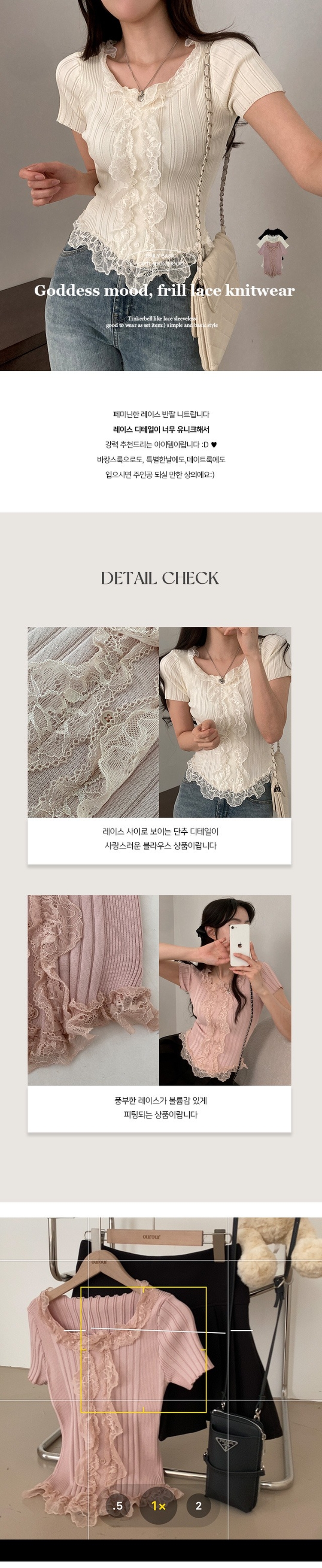 SNT24285 フェミニンフリルレースUネック半袖ニット