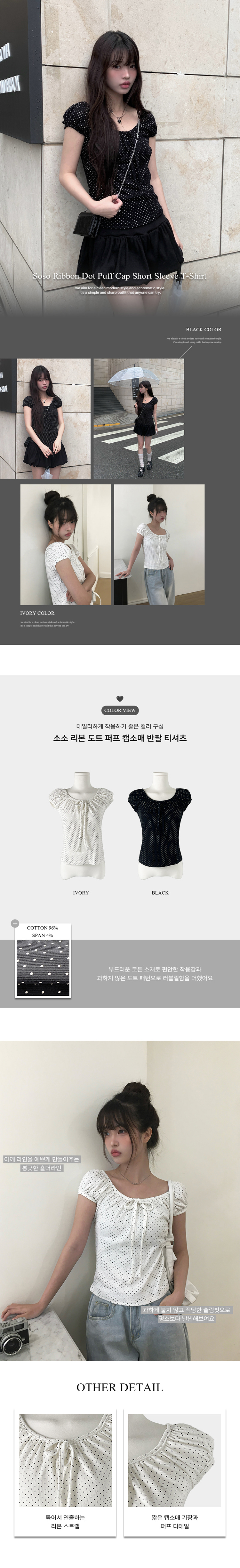 STS70598 リボンドットパフ半袖ブラウス