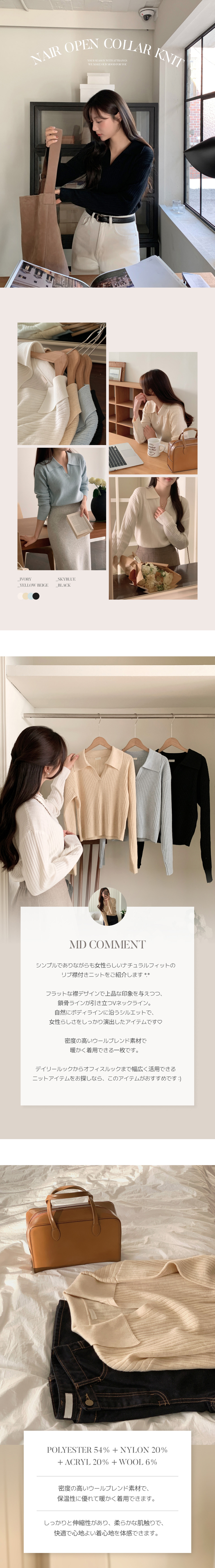 SNT32148 [ウール含有] ネル リブ オープンカラー ニット