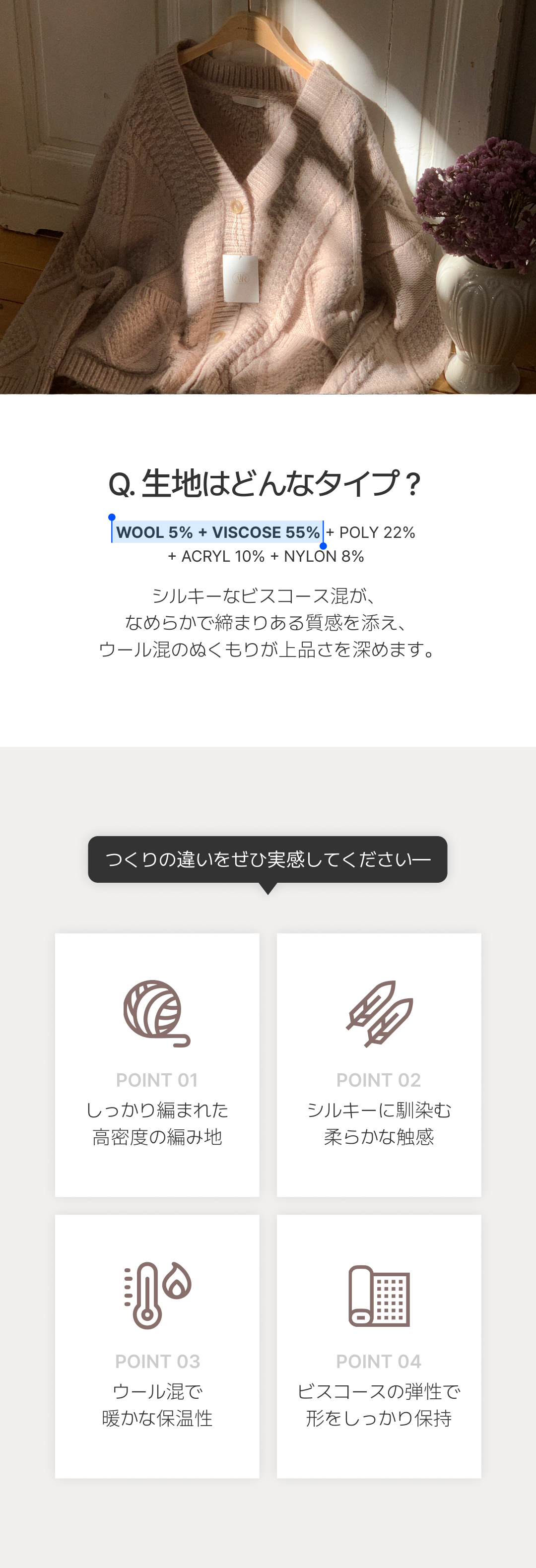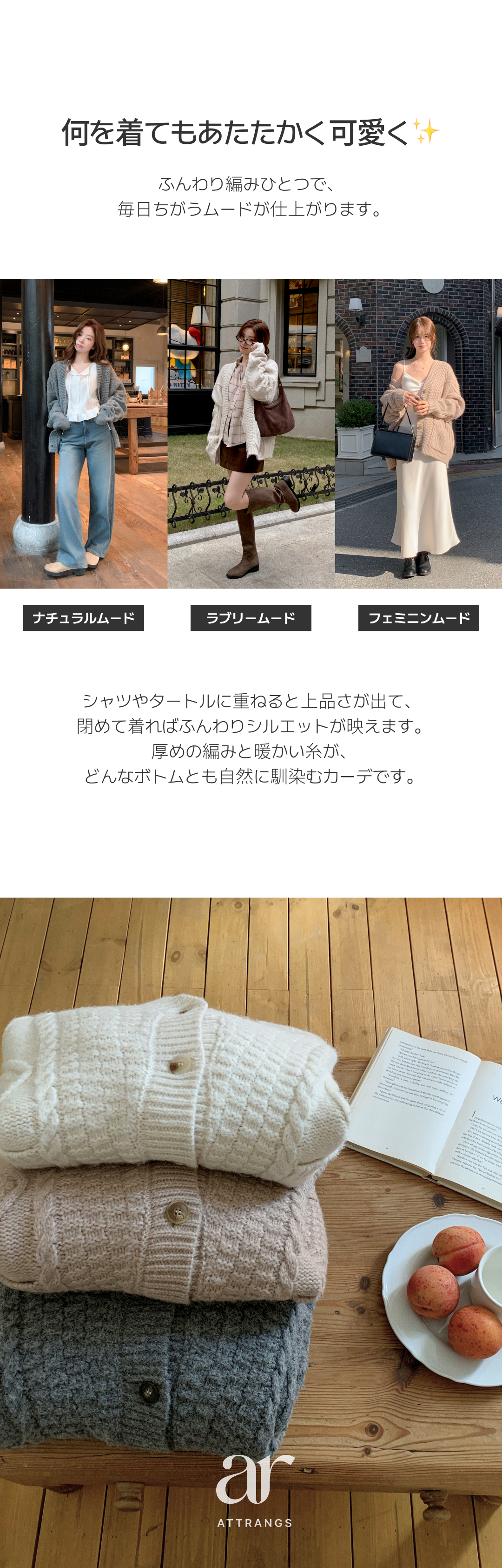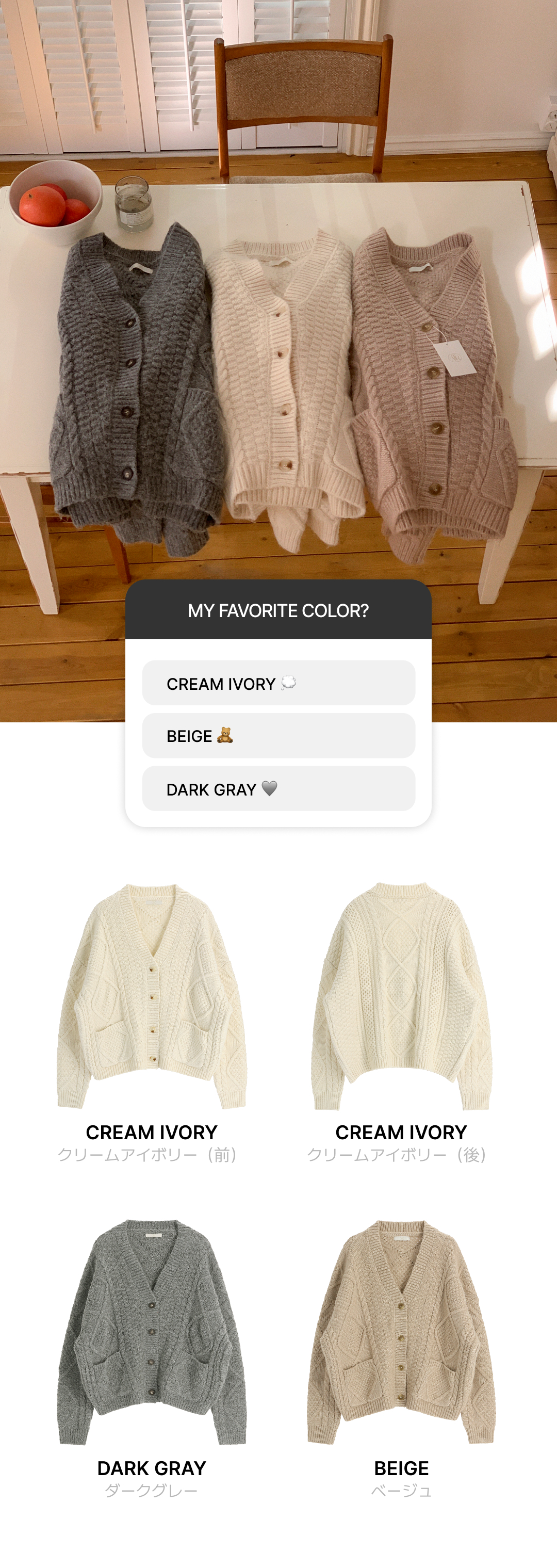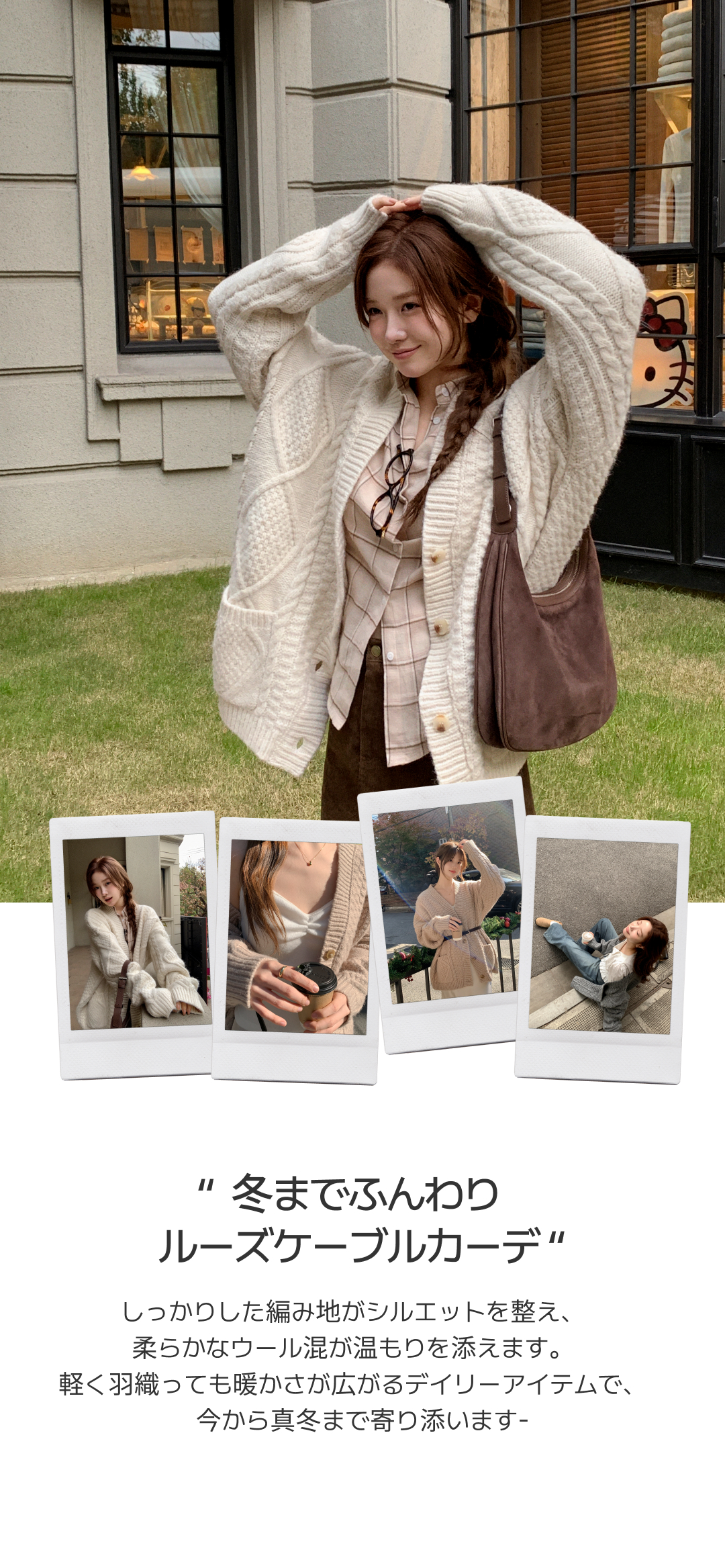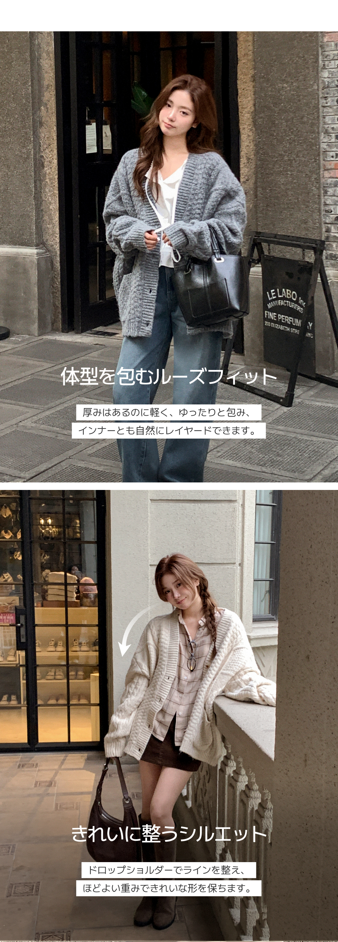 SGD29950 [ウール混] (MADE / ウール5% / 厚手でふんわり♥ / ソフトタッチ) ケーブル Vネック ルーズフィット ウールカーディガン