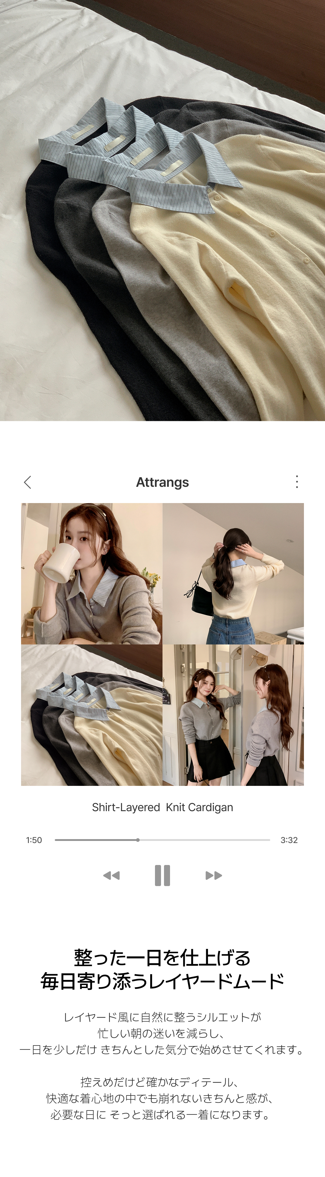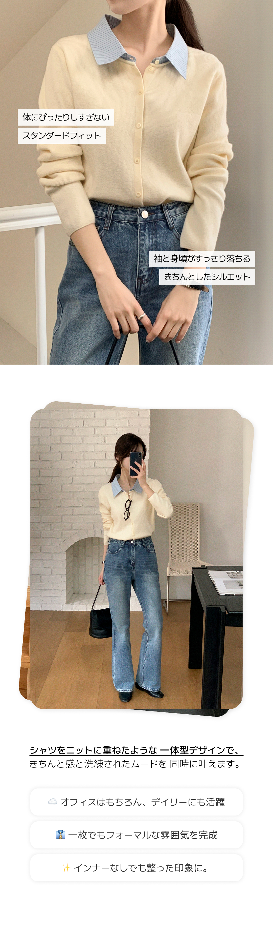SGD31102 レイヤード風長袖ニットカーディガン