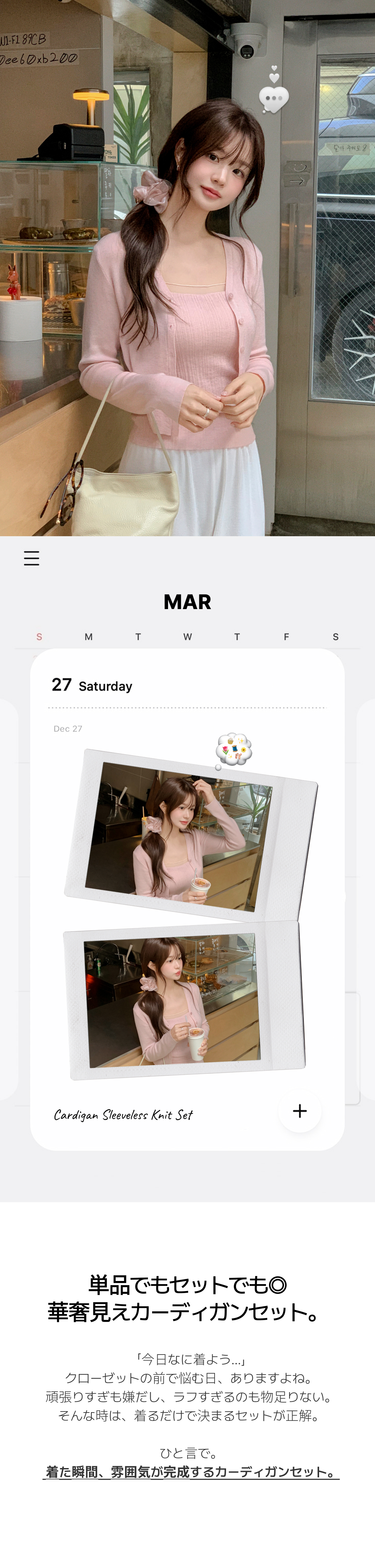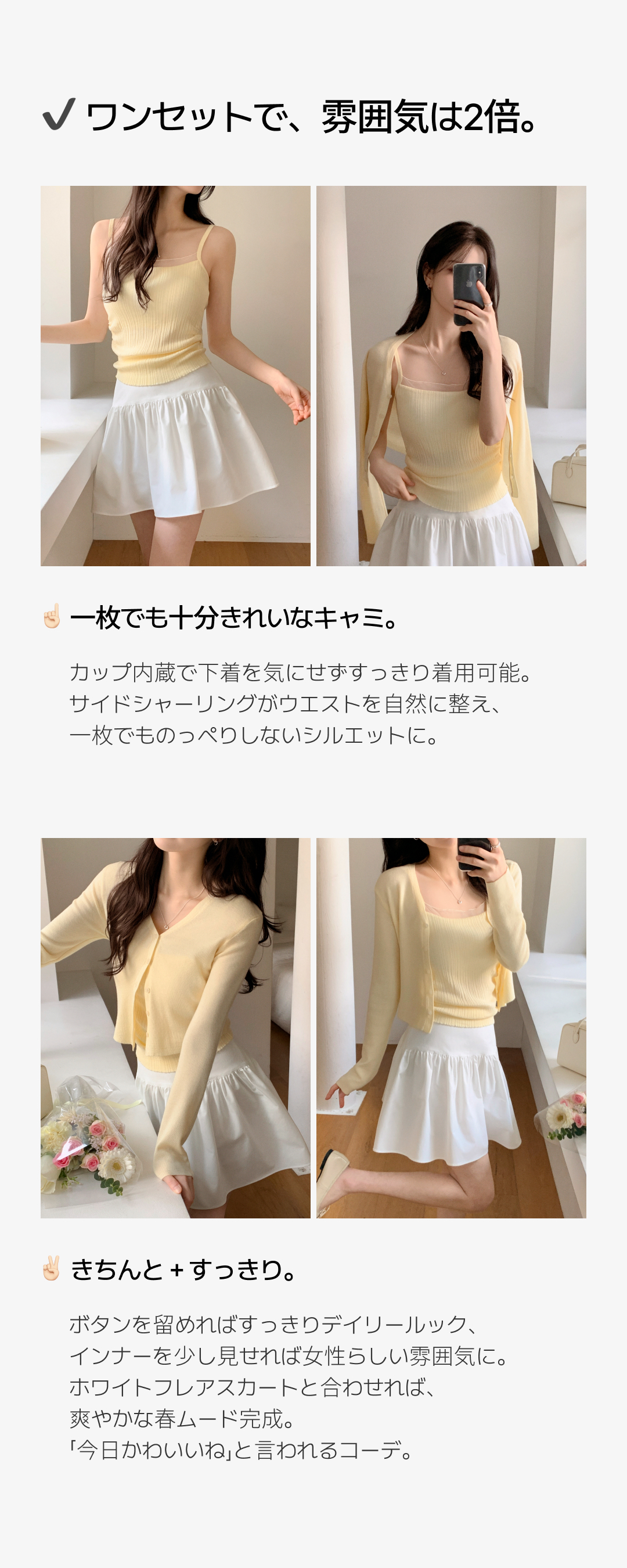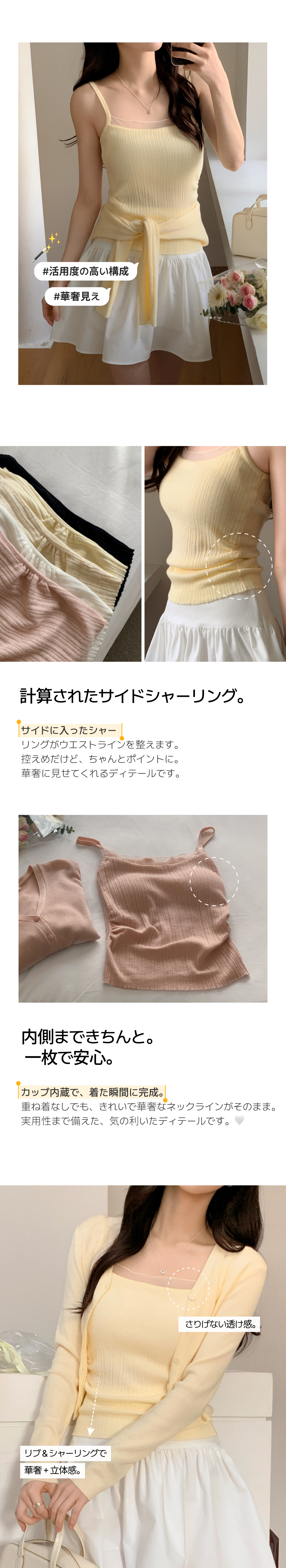 SGD31120 (カップ付きキャミ+カーディガンSET/華奢フィット) シアー リブ シャーリング カップ付きキャミ ウール クロップド 長袖 カーディガン セット