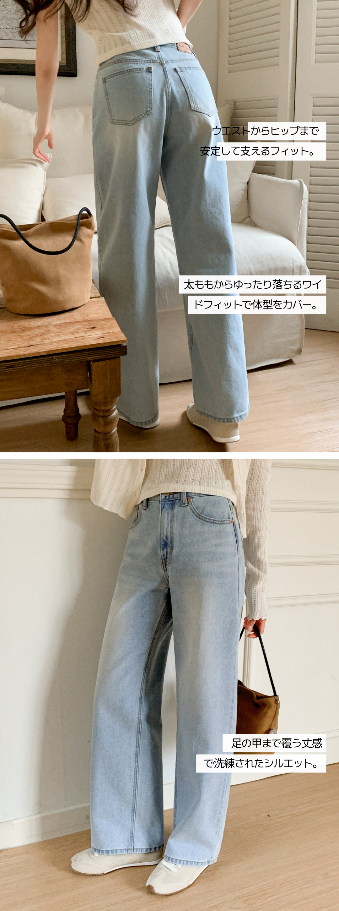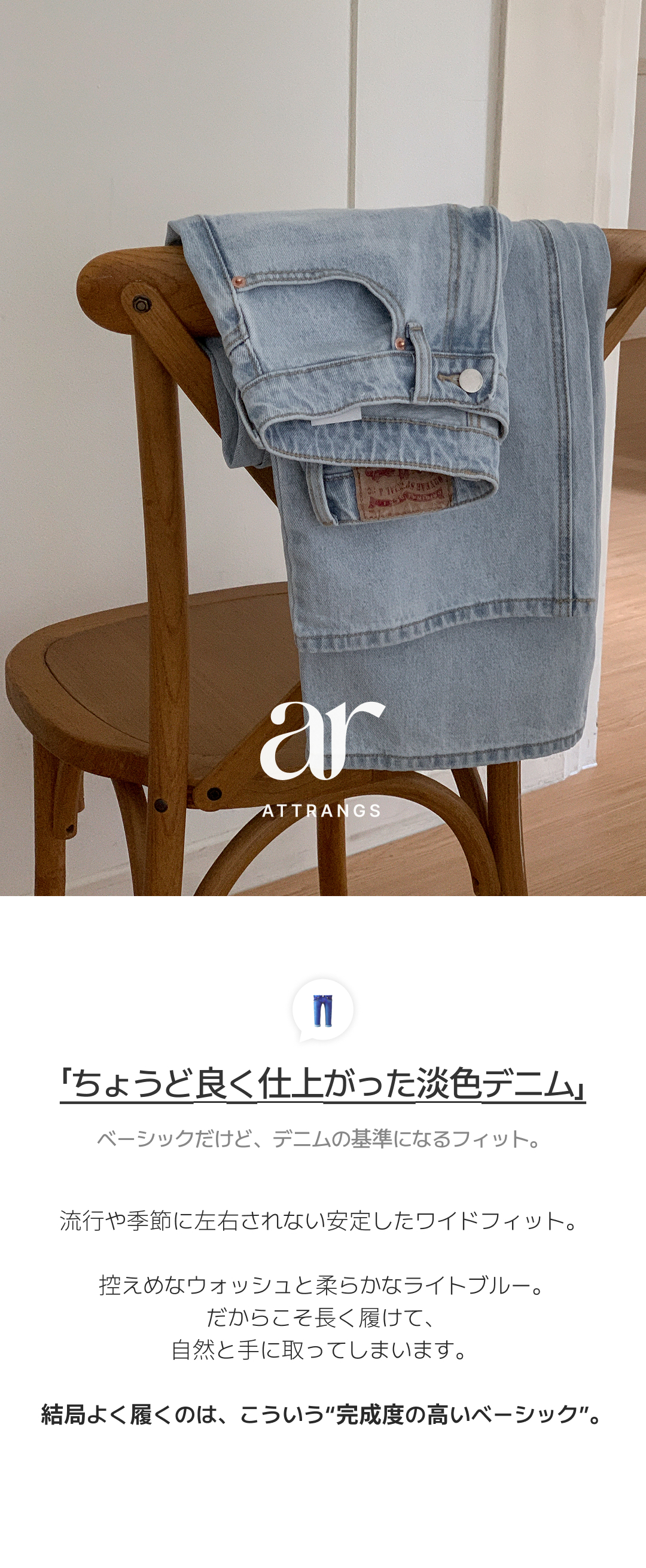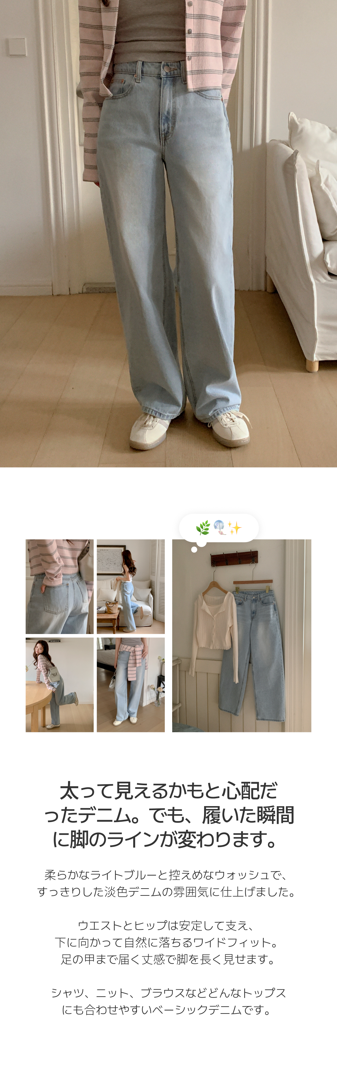 SJE13844 (ヴィンテージパッチラベル / ふんわりライトブルー♥) ライトブルー ワイドフィット デニムパンツ