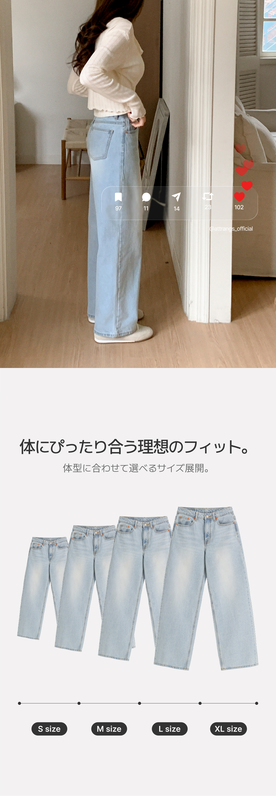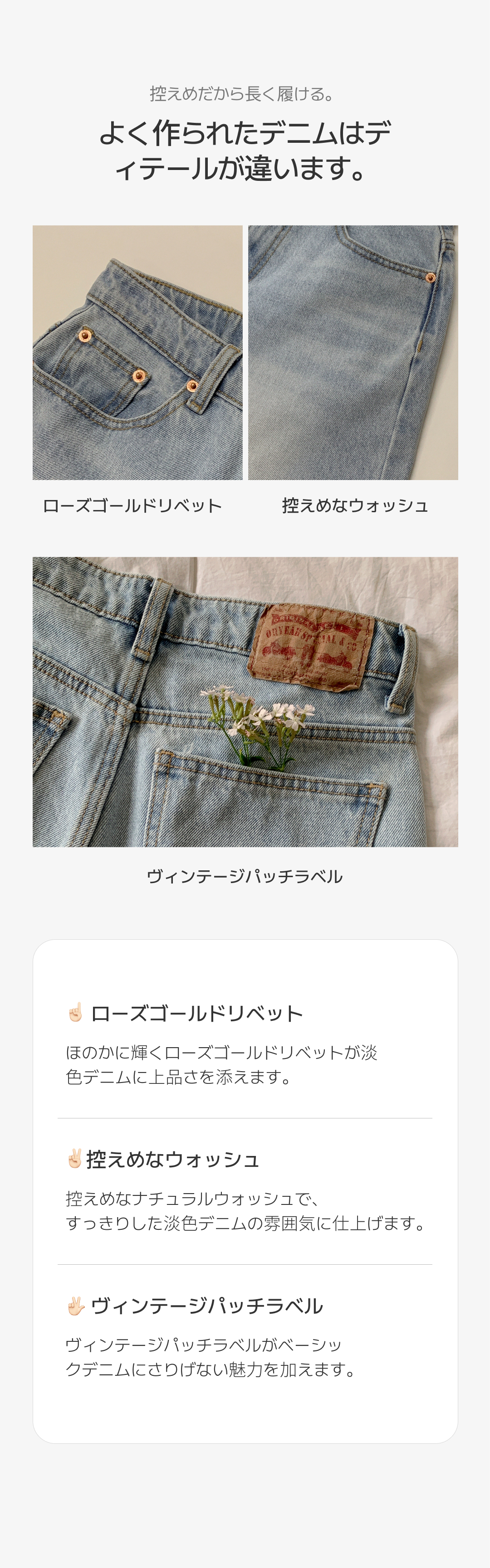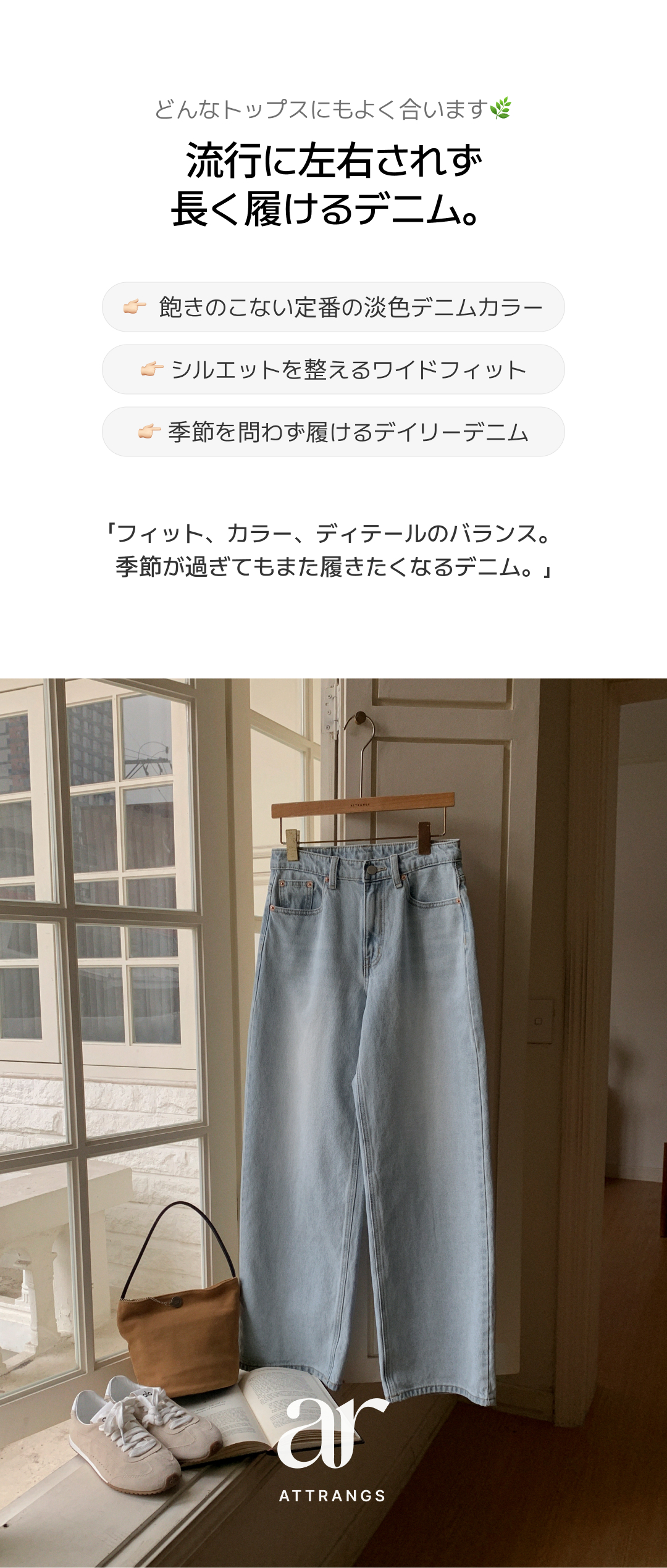 SJE13844 (ヴィンテージパッチラベル / ふんわりライトブルー♥) ライトブルー ワイドフィット デニムパンツ