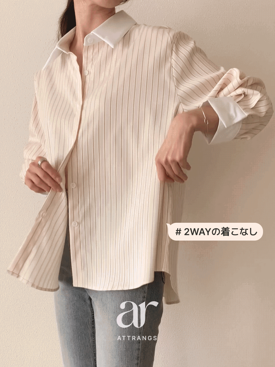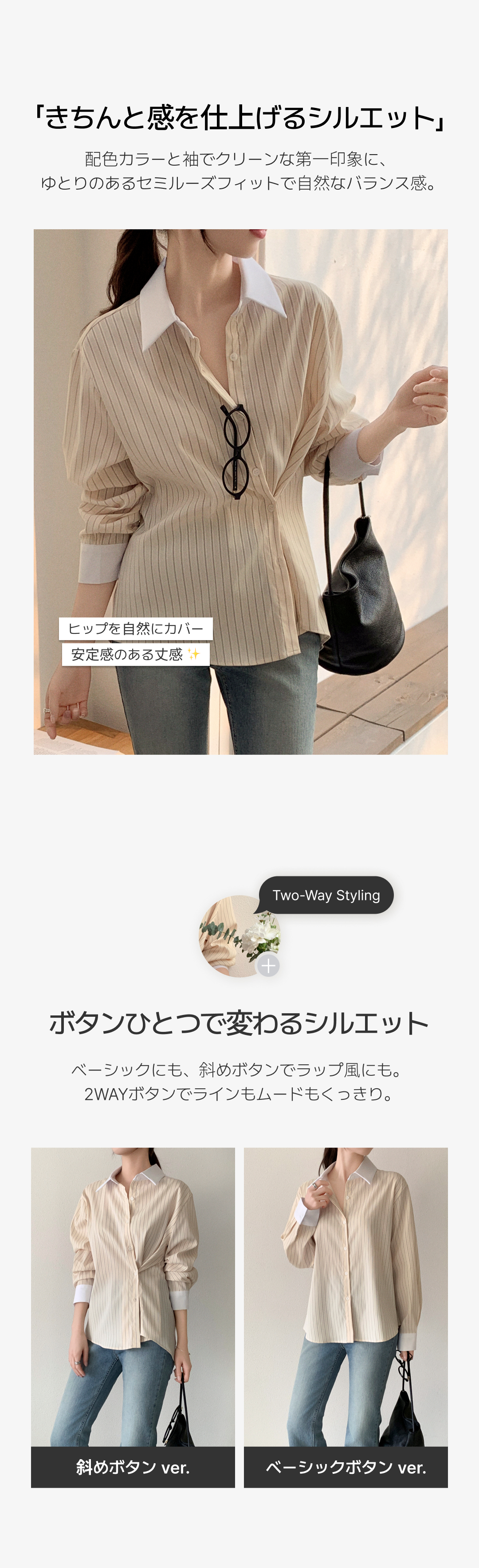 SBS30943 (MADE/2WAYフィット/通勤スタイルに◎)ストライプ 2WAYボタン 配色カラーシャツ