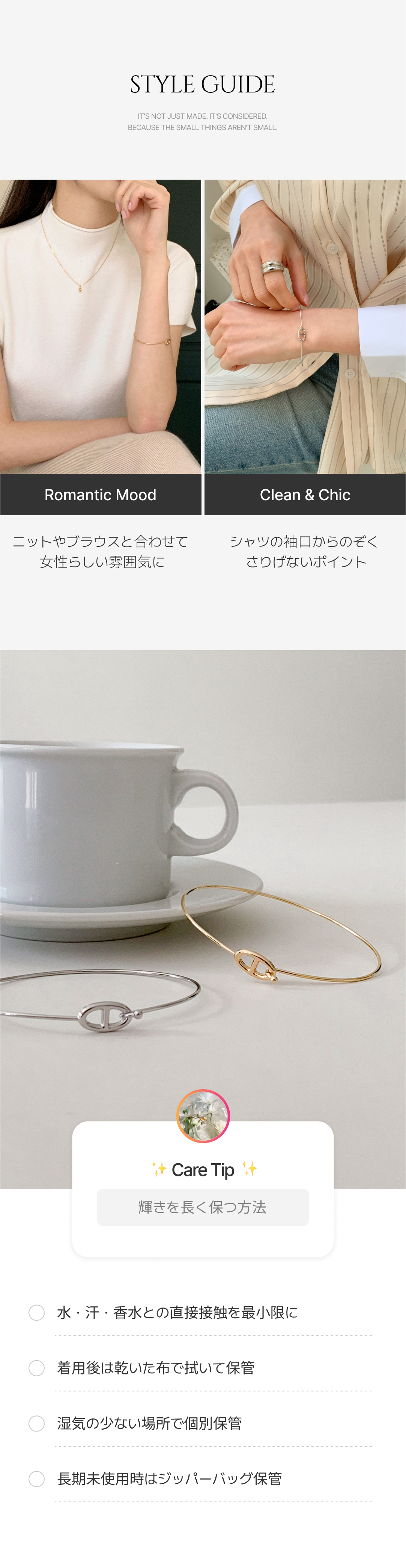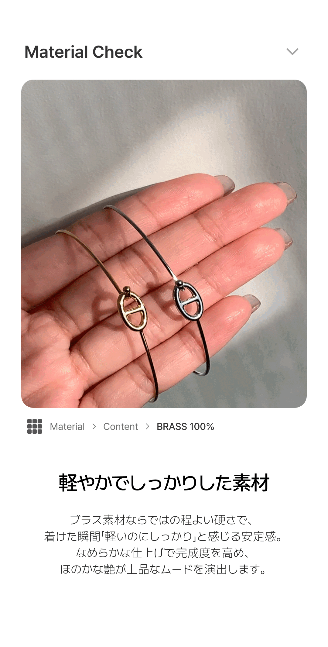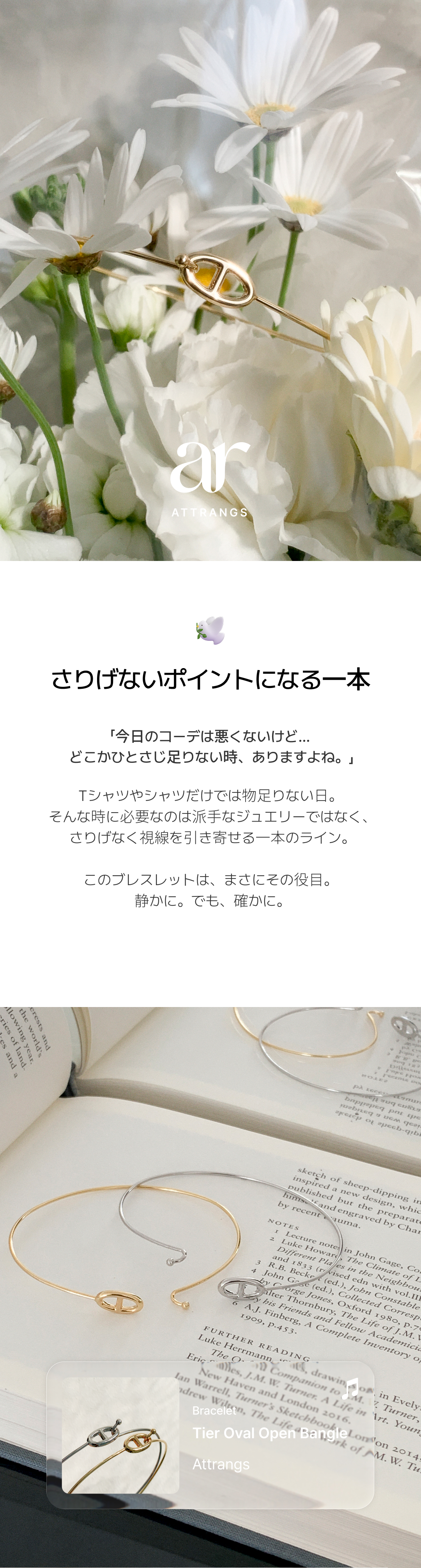 SAC8982 (細身ライン/ポイントチャーム/レイヤードおすすめ) オーバル スリム オープン リング ブレスレット