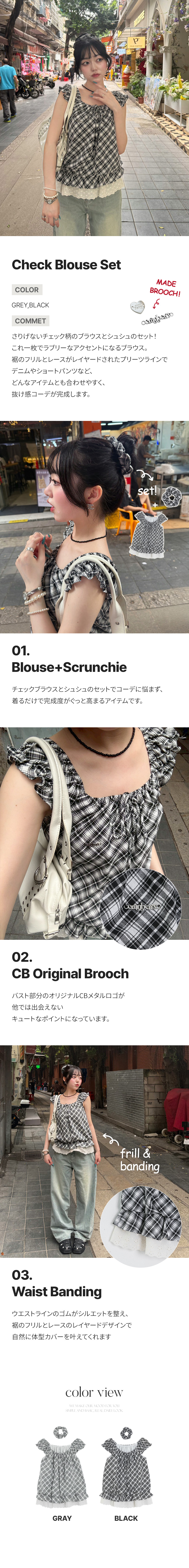 SBS31740 【❤️MADE】【シュシュ付き】チェックフリルブラウス