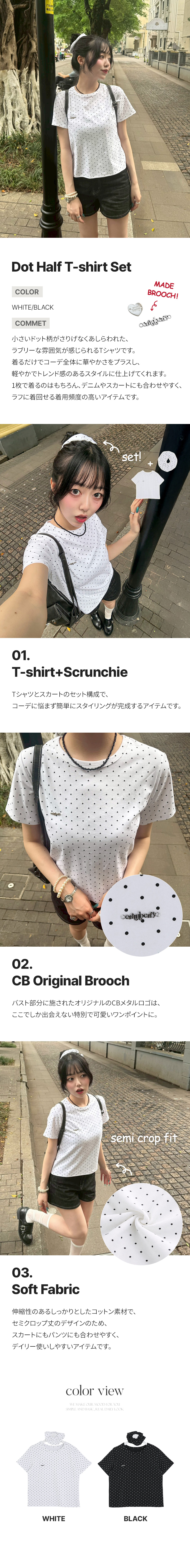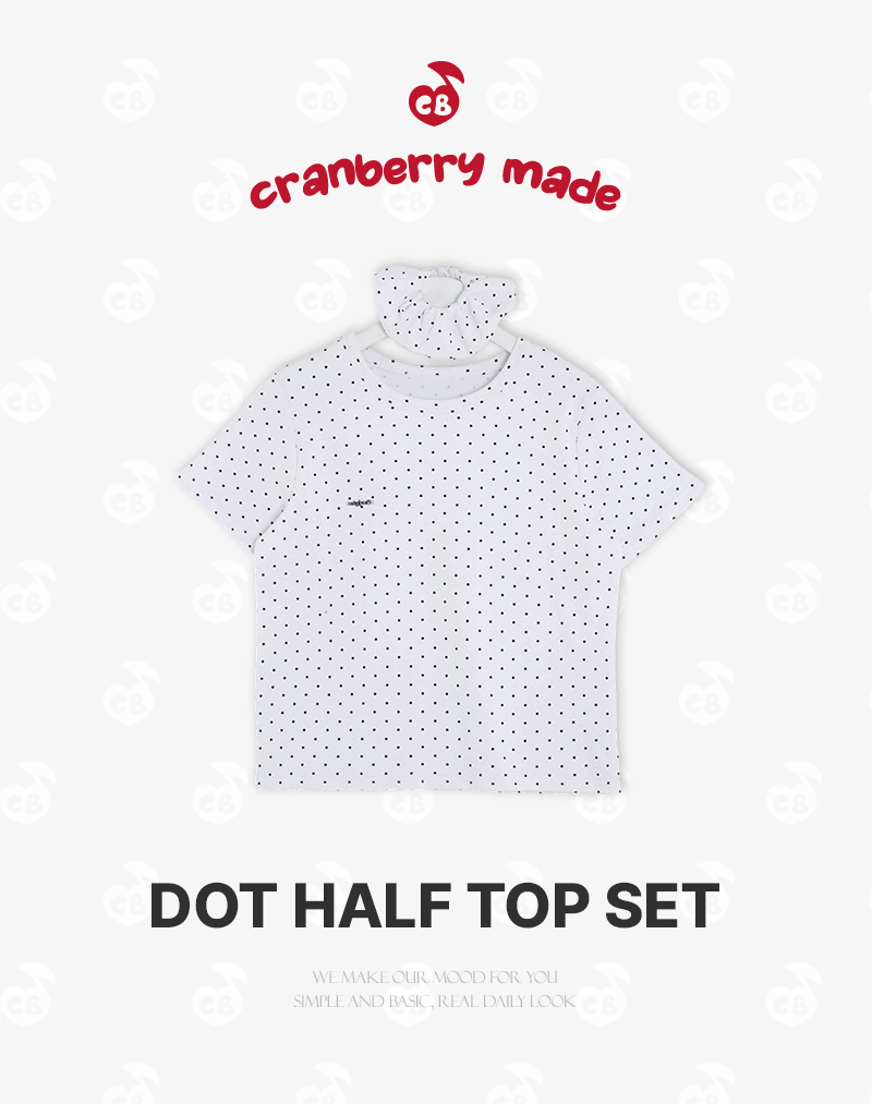 STS245392 【❤️MADE】【シュシュ付き】クロップ丈ドッドTシャツ