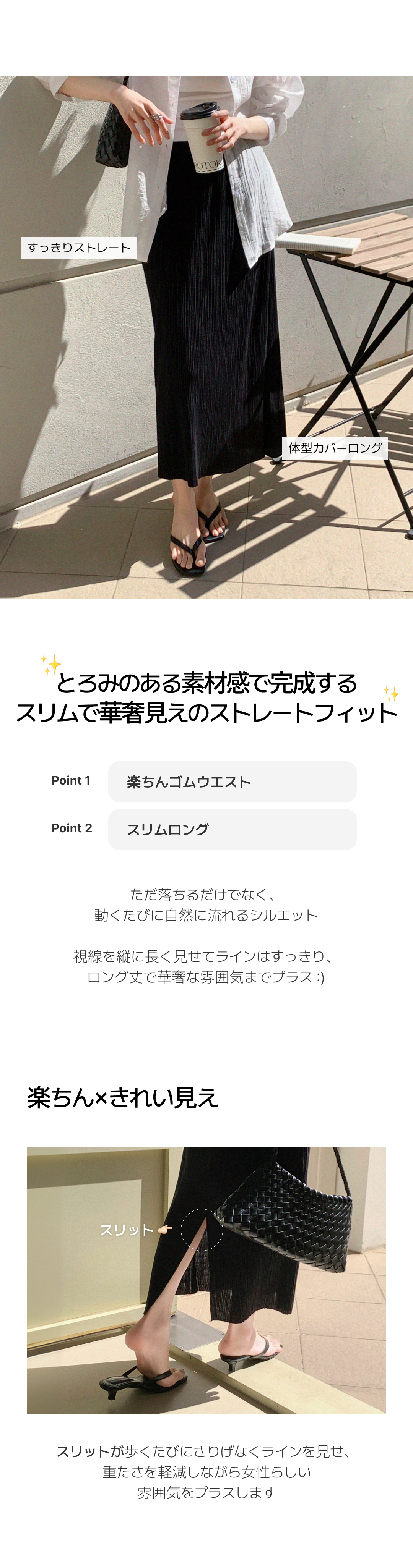 SSK26941 (オールゴムウエスト/軽やかな揺れ感/リンクル素材♥)ラビネ リンクル オールゴム ロングスリットスカート