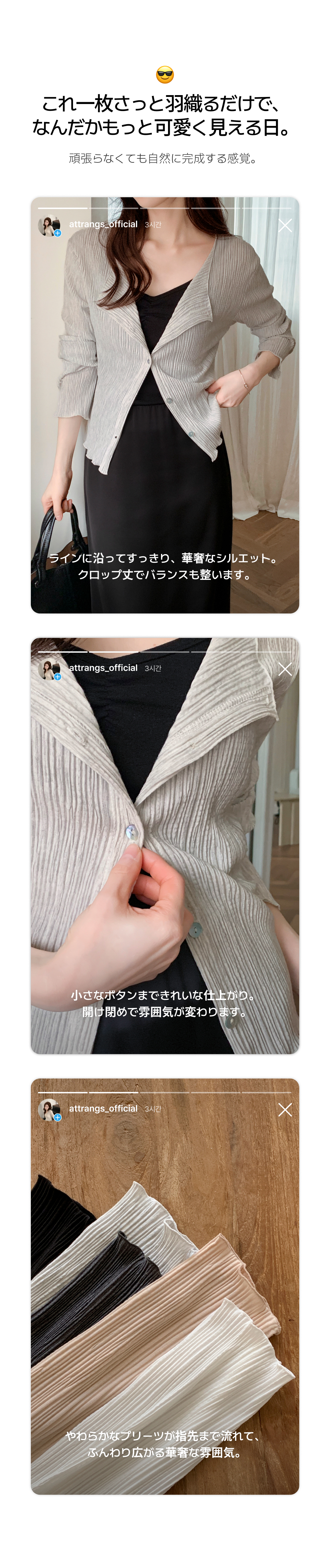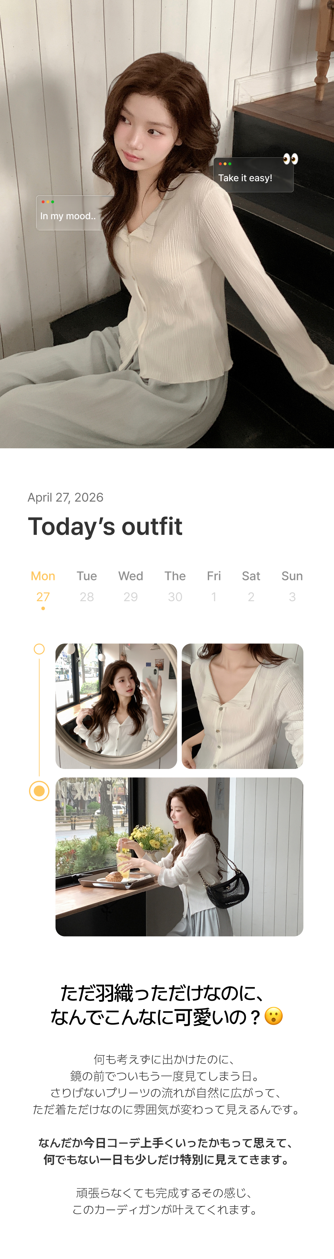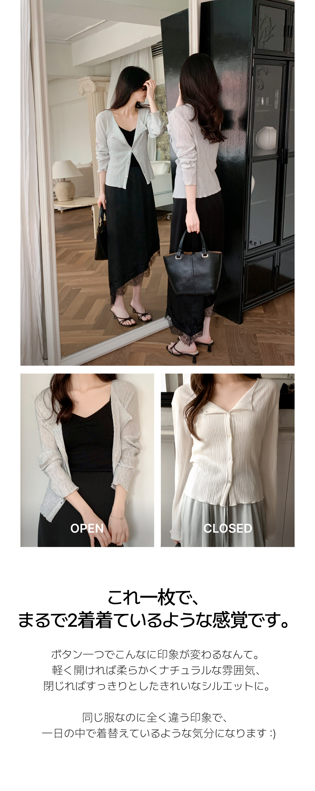 SGD32188 (軽く羽織りやすい/華奢フィット) プリーツ スリム ボタン 長袖 カーディガン