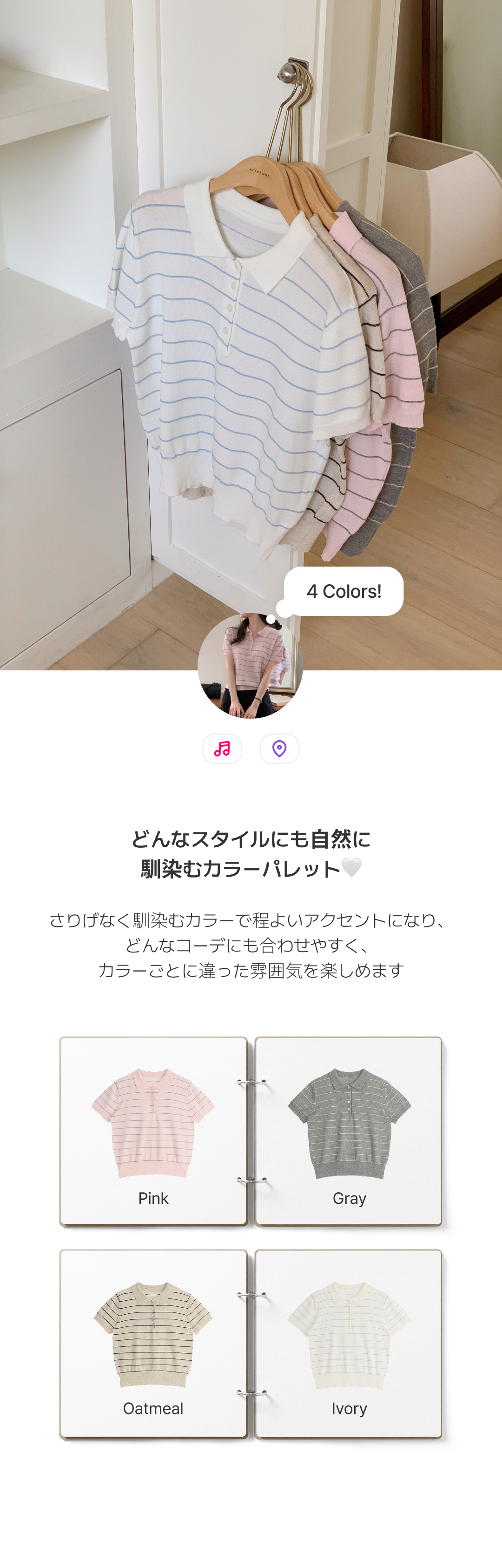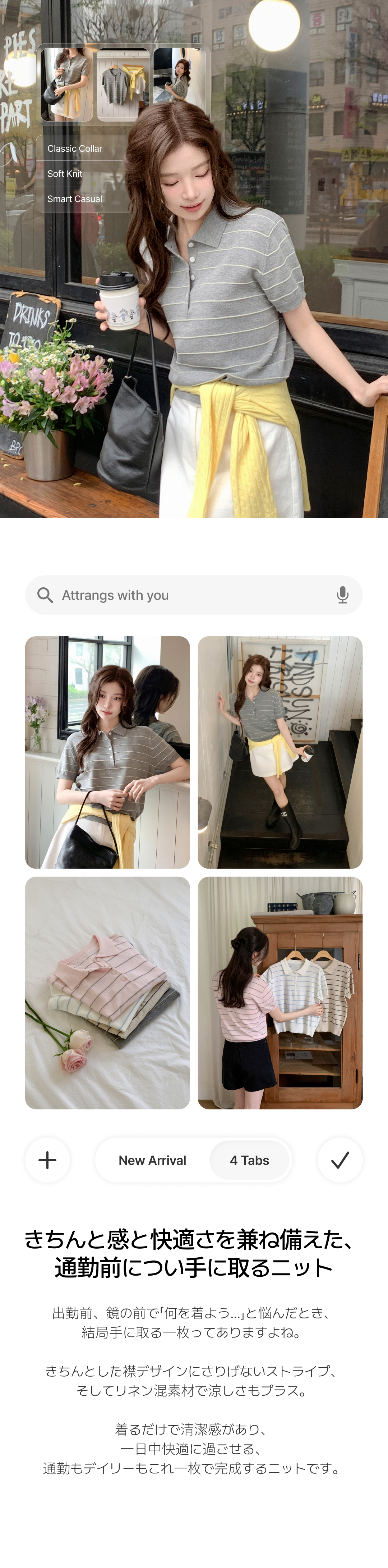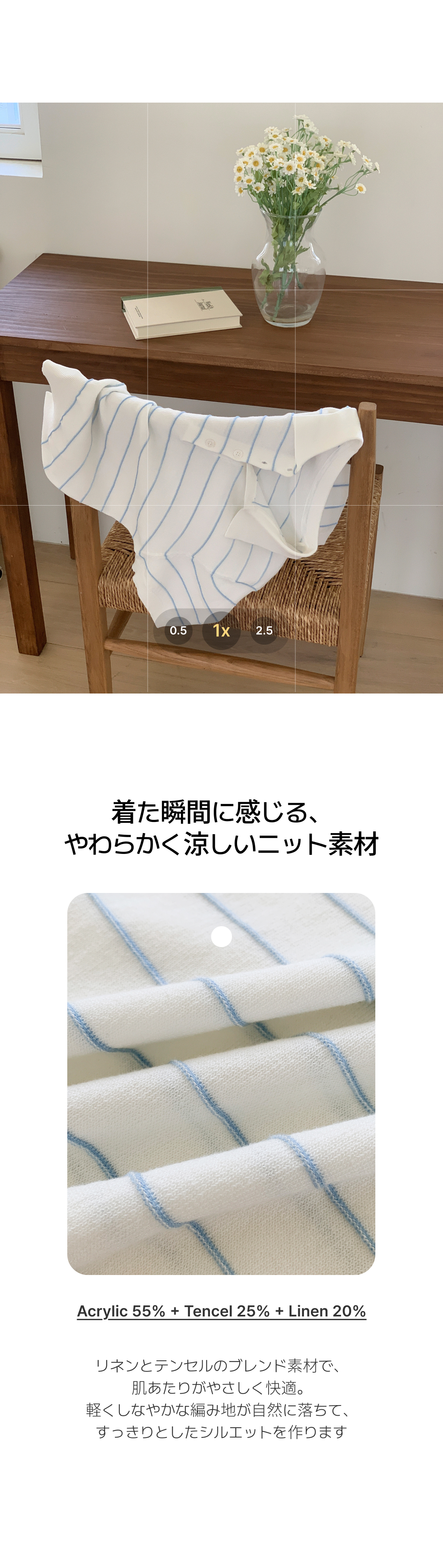 SNT36291 (ストライプ/涼しいリネン/デイリーおすすめ♥)ストライプ リネン ピケ 半袖ニット
