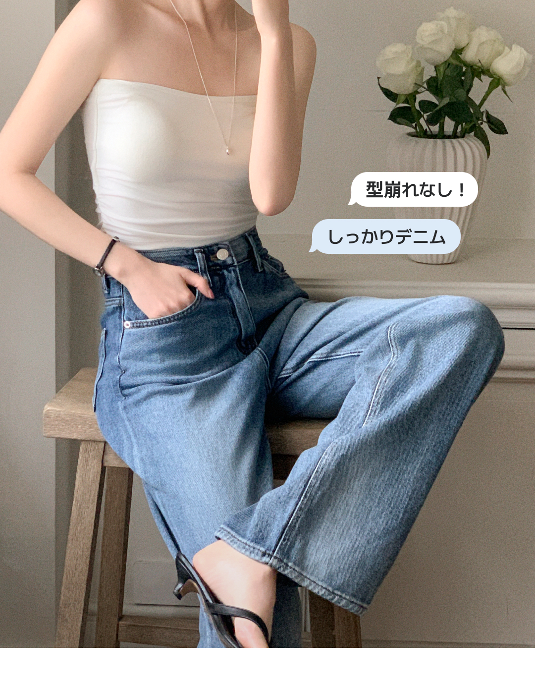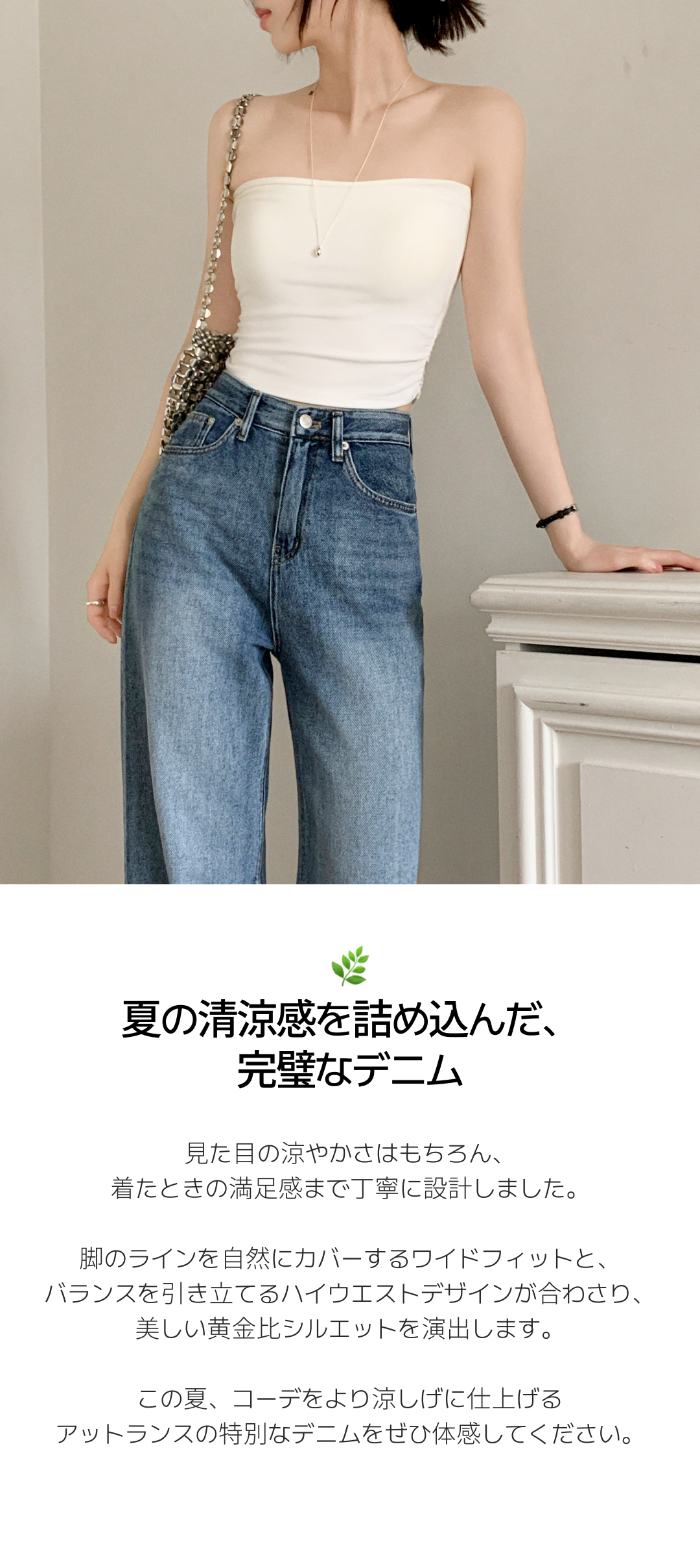SJE14336 (サマーパンツ/下半身補整フィット) ウォッシング デニム ストレート ワイドパンツ