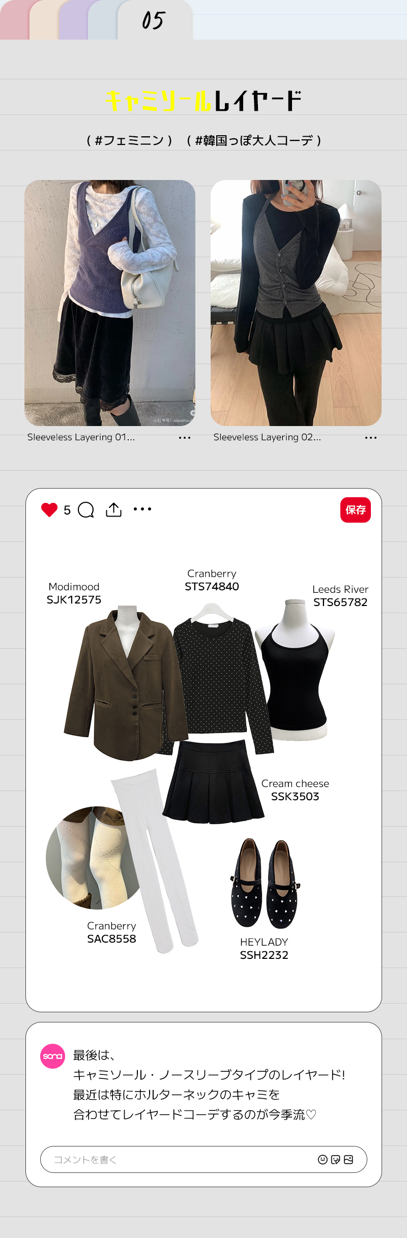 【SET】ホルターネックキャミソール+レイヤードTシャツ(5color)