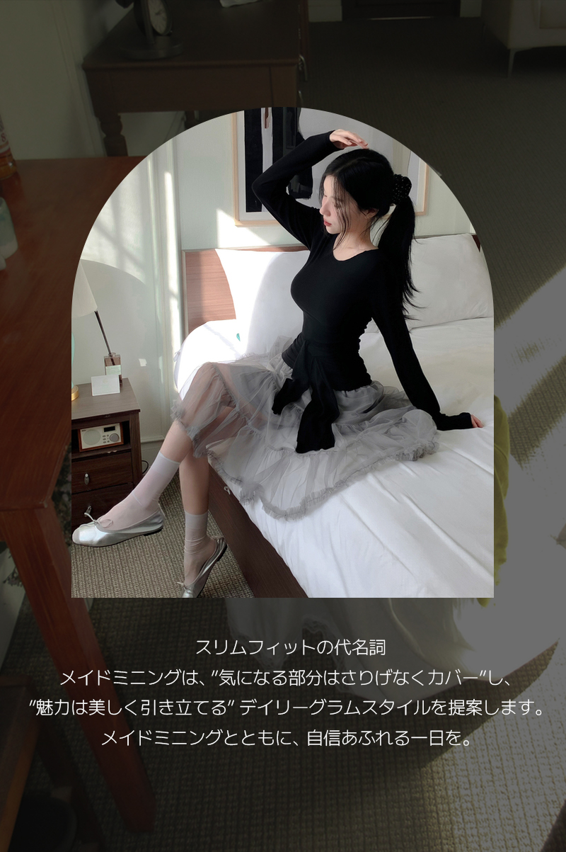 ウエストリボンラップ長袖Tシャツ(7color)
