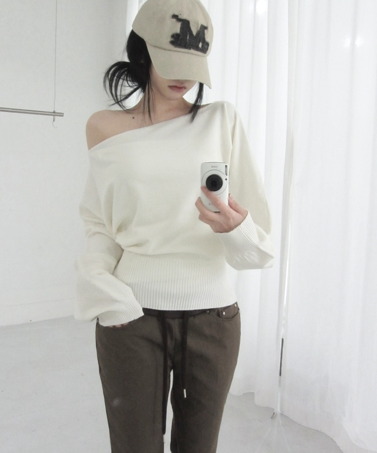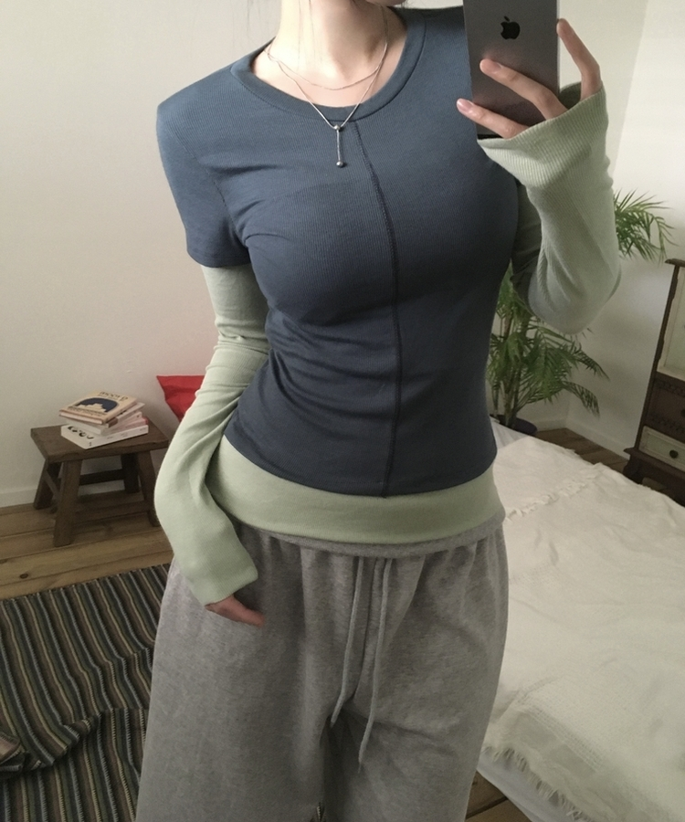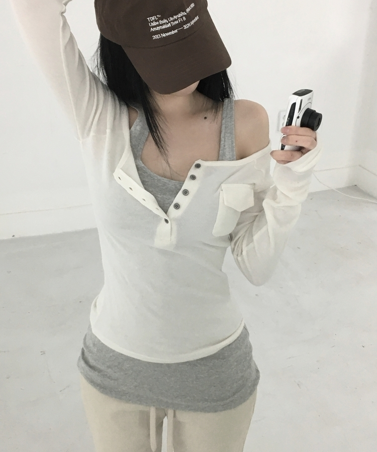 【SET】ボタンホルターキャミソール オフ長袖Tシャツ