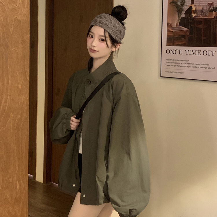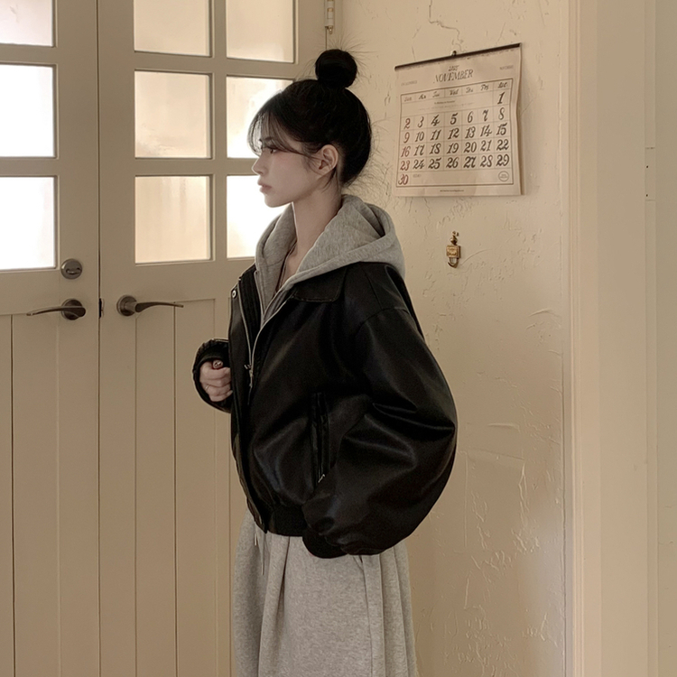 ビンテージチェックバイカラークロップフードジップアップ秋服開講ルック(5color)