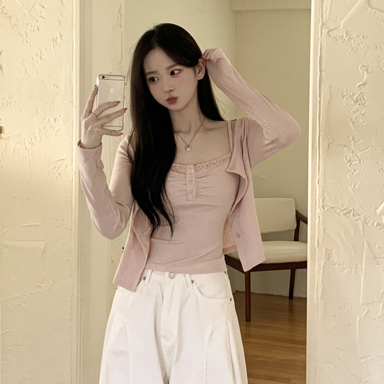 レイヤードスリムボタンスパン長袖Tシャツ(6color)