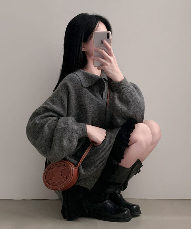 Vネックルーズペンダントニット(6color)