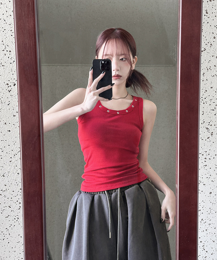 スタッズラウンドスリムキャミソール(7color)