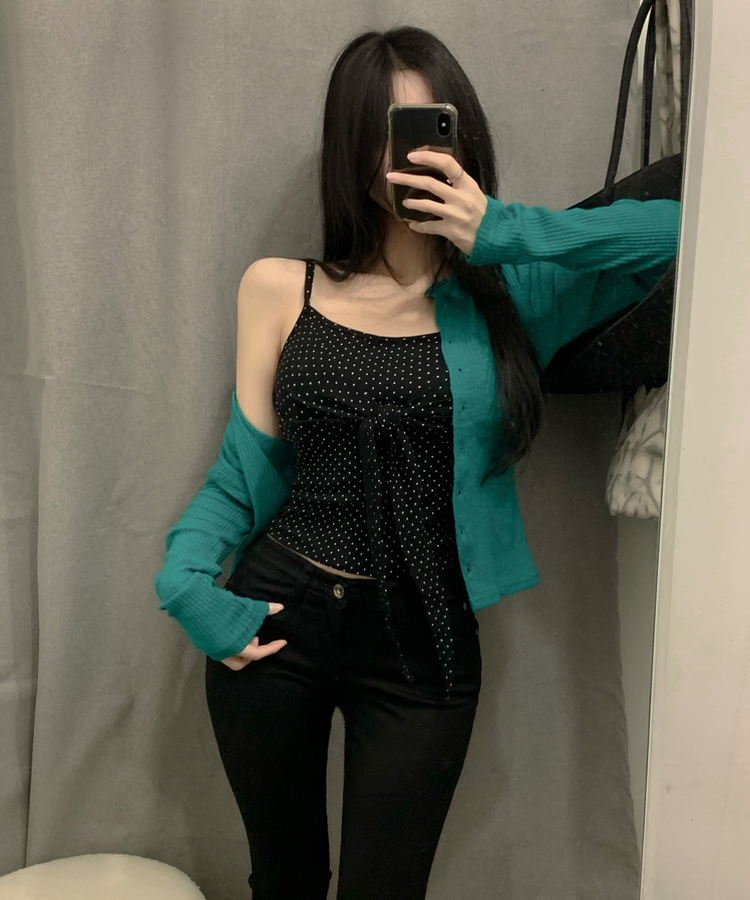 ドットリボンツイストリブキャミソール