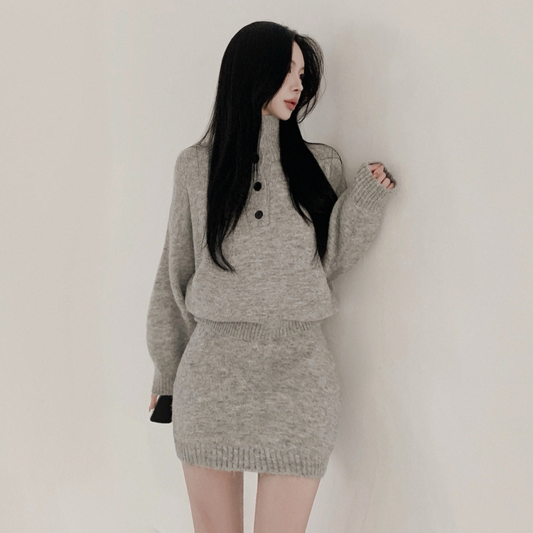 【SET】プチハイネックボタンニット ミニスカート