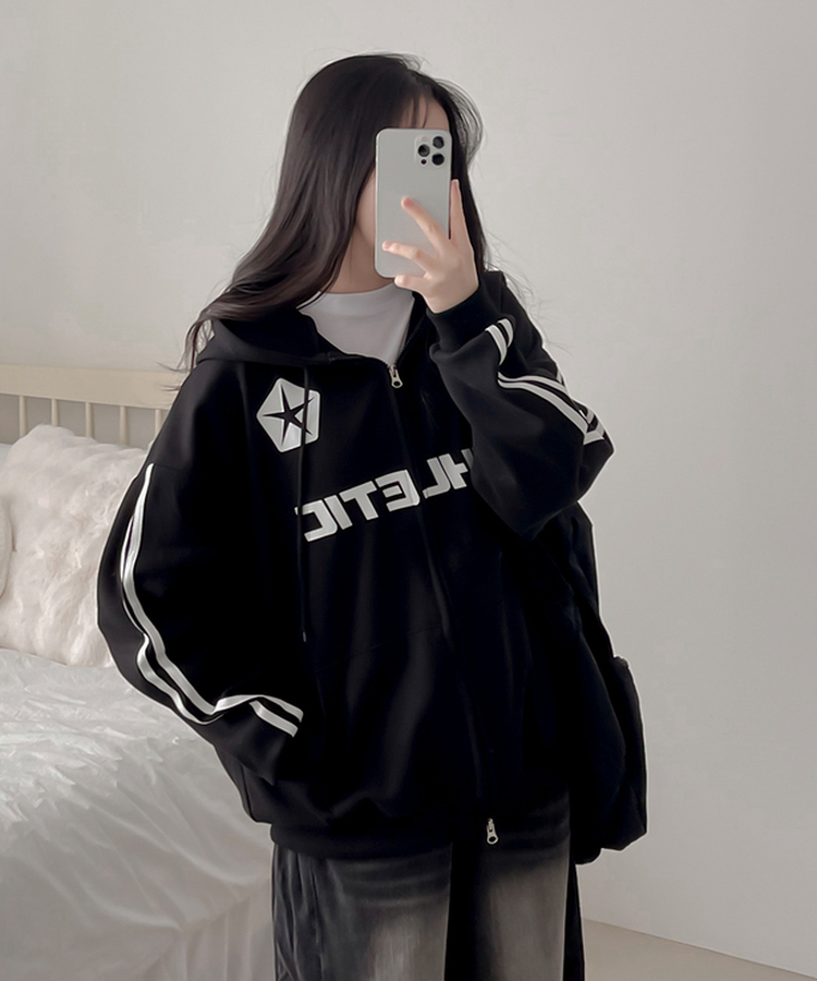 Attentionプリントラインスリーブスポーティーパーカー