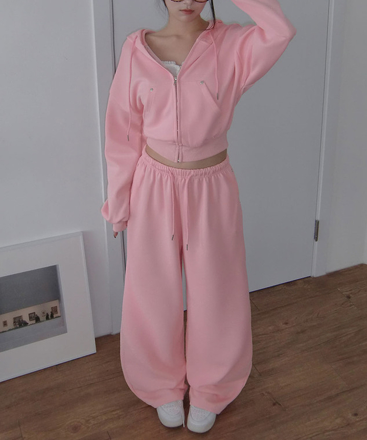 【SET】エンミルクロップバッグレタリングリベットフードジップアップバンディングワイドトレーニングパンツ